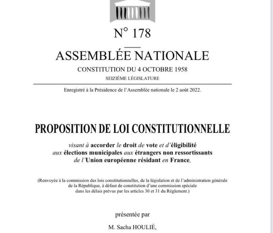 A travers la proposition de loi du député de la majorité Sacha Houlié visant à donner le droit de vote aux étrangers hors UE aux élections municipales, c’est bel et bien Emmanuel Macron qui tend la main à l’extrême-gauche incarnée par la NUPES. Une nouvelle preuve s’il en fallait encore que Macron n’a rien à envier à Mélenchon quand il s’agit de vouloir saccager la France et déconstruire ce qui fait notre nation.